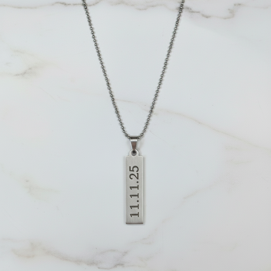 Medalla de acero quirúrgico con terminación espejo en ambas caras, de 3 cm de LARGO y 2 mm de espesor.
