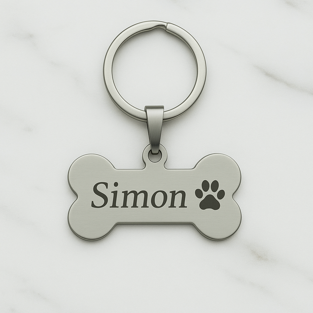 Medalla de acero quirúrgico con terminación espejo en ambas caras, de 4 cm de ancho y 2 mm de espesor.