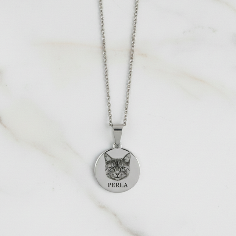 Medalla de acero quirúrgico con terminación espejo en ambas caras, de 2 cm de diámetro y 2 mm de espesor.